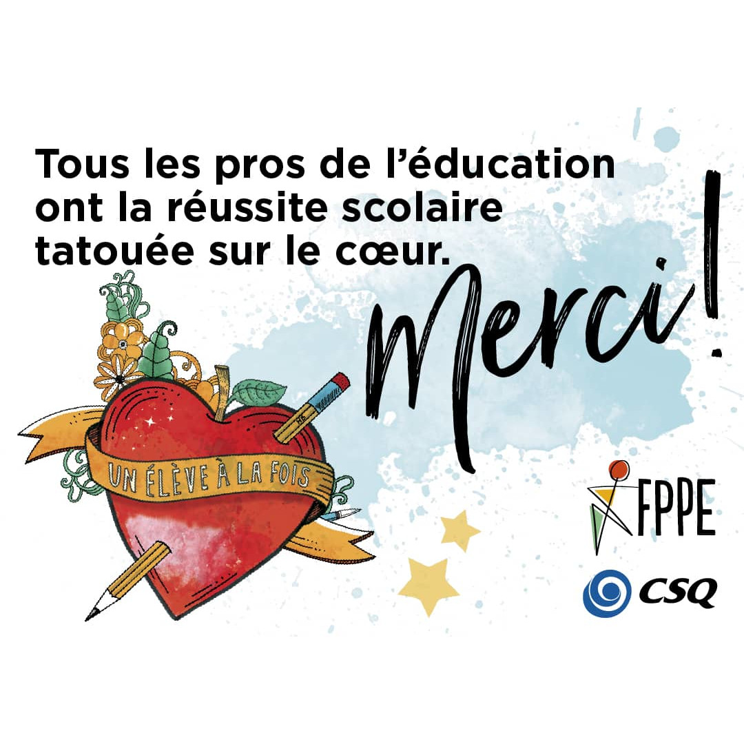 Nous sommes fiers de souligner l’excellent travail de nos professionnelles et professionnels de l’éducation et heureux de mettre en lumière leur dévouement exceptionnel qui contribue sans conteste au succès de tous. Les professionnelles et professionnels de la Commission scolaire Central Québec (CSCQ) ont bel et bien  « les services professionnels publics tatoués sur le cœur ».