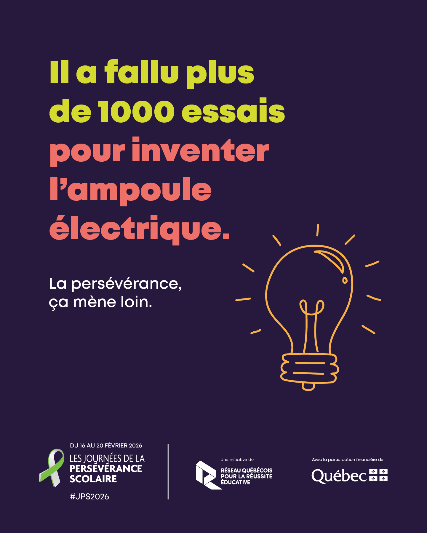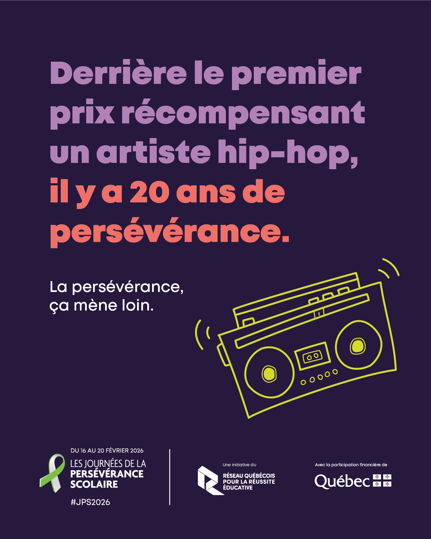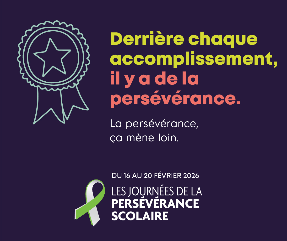 Du 16 au 20 février 2026, joignez-vous au mouvement pour soutenir toutes les personnes qui apprennent, avancent et persévèrent. Il y a plusieurs façons de participer. Choisissez celles qui vous inspirent :  journeesperseverancescolaire.com