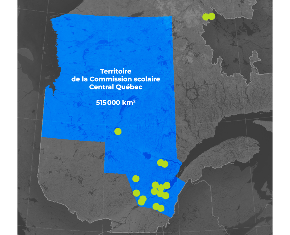 La Commission scolaire Central Québec a la particularité d’être la commission scolaire anglophone qui possède le plus vaste territoire de la province, ce qui apporte un lot bien particulier de défis à relever.