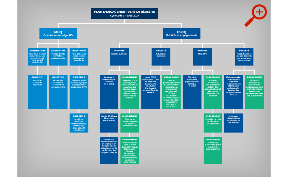 L’objectif de notre Plan d’engagement vers la réussite (PEVR) 2017-2030 est de partager avec la communauté notre vision de la réussite éducative pour l’avenir.